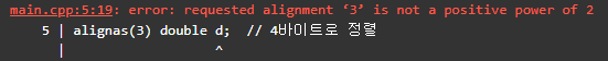 alignas(4) double d; // 4바이트로 정렬
